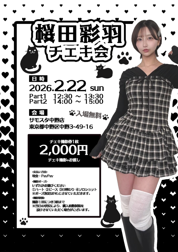 2026年2月22日(日)、桜田彩羽チェキ会開催!