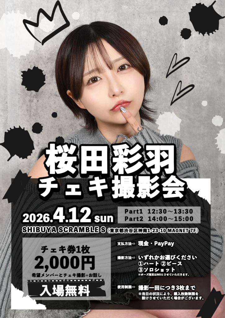 2026年4月12日(日)桜田彩羽チェキ会開催!